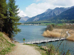 Hier befindet sich unser Haus in ruhiger und sonniger Lage und ist zugleich ein beliebter Ausgangspunkt für herrlich entspannende Wanderungen, schweißtreibende Berg- und Radtouren und auch Enduro Bike Trails. Am See können Sie Sportarten wie Kitesurfen oder auch Windsurfen nachgehen oder Sie beobachten dieses Spektakel auf einer entspannten Schiffstour mit der MS Hubertus. Rund um den See verläuft ein teils asphaltierter Weg für das Radfahren, Laufen aber auch für einen gemütlichen Spaziergang. Der Radweg entlang der Via Claudia Augusta verläuft entlang der Dörfer des Vinschgaues bis zur Kurstadt Meran. Sie können sich an verschiedenen Orten ein Fahrrad ausleihen (https://www.suedtirol-rad.com/) und an verschiedenen Punkten wieder zurückgeben und bequem mit der Vinschgerbahn zurück fahren.